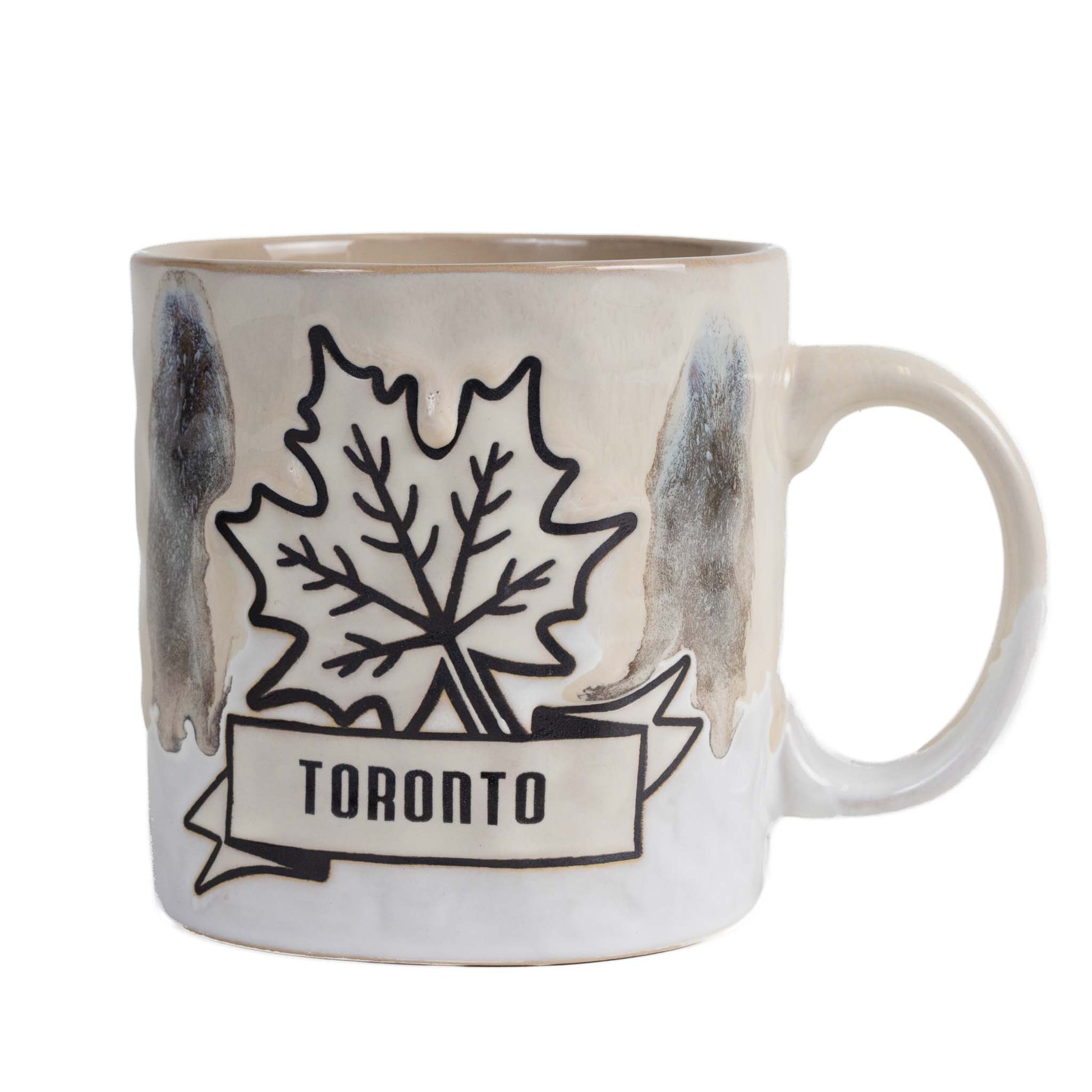 This Toronto maple leaf mug features a bold maple leaf design with “Toronto” banner and a gradient glaze finish - ideal as a Toronto souvenir or Canada-themed drinkware piece.